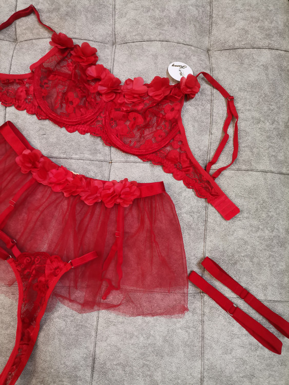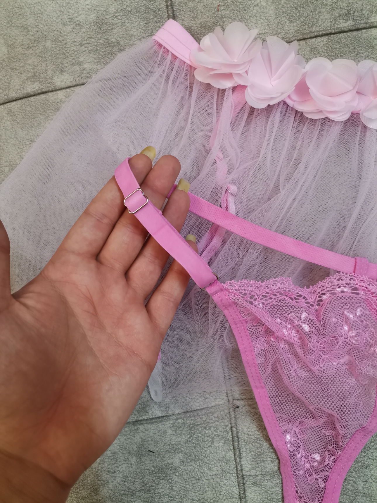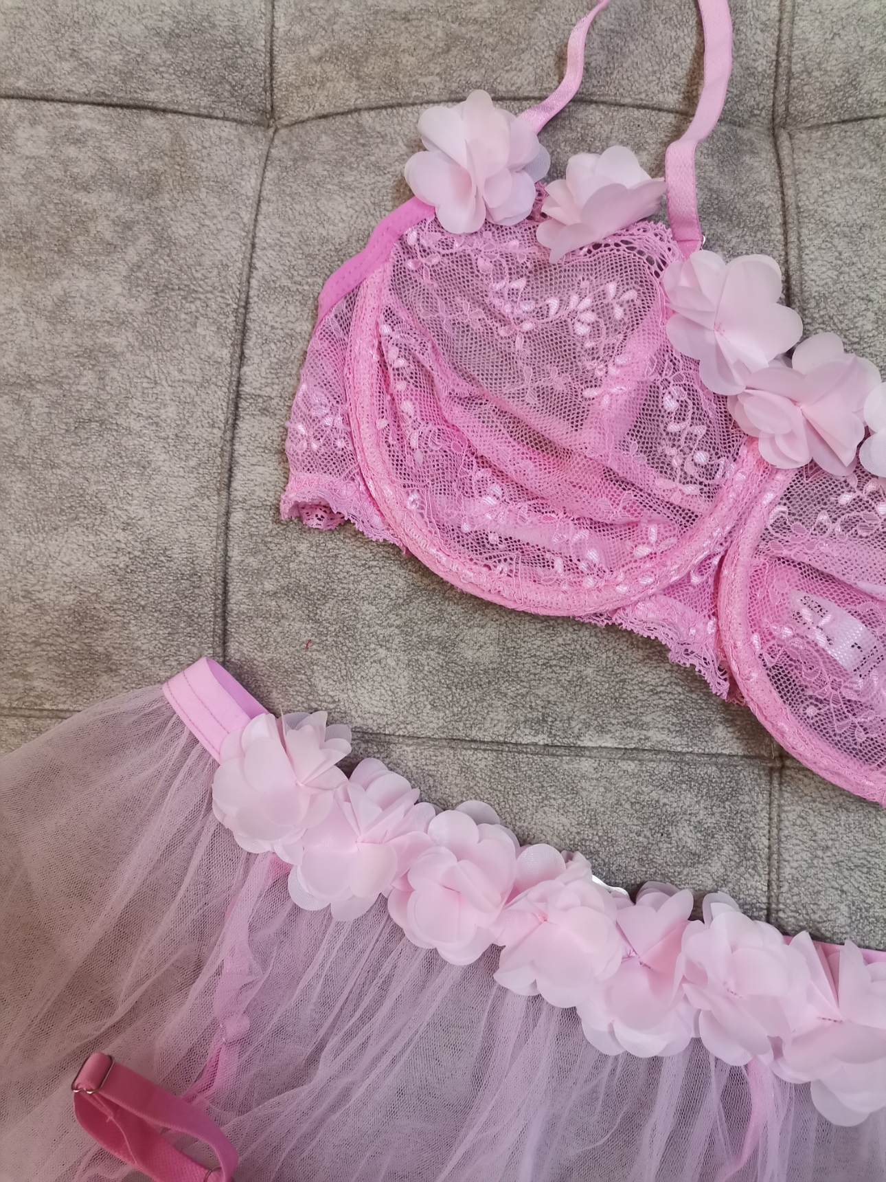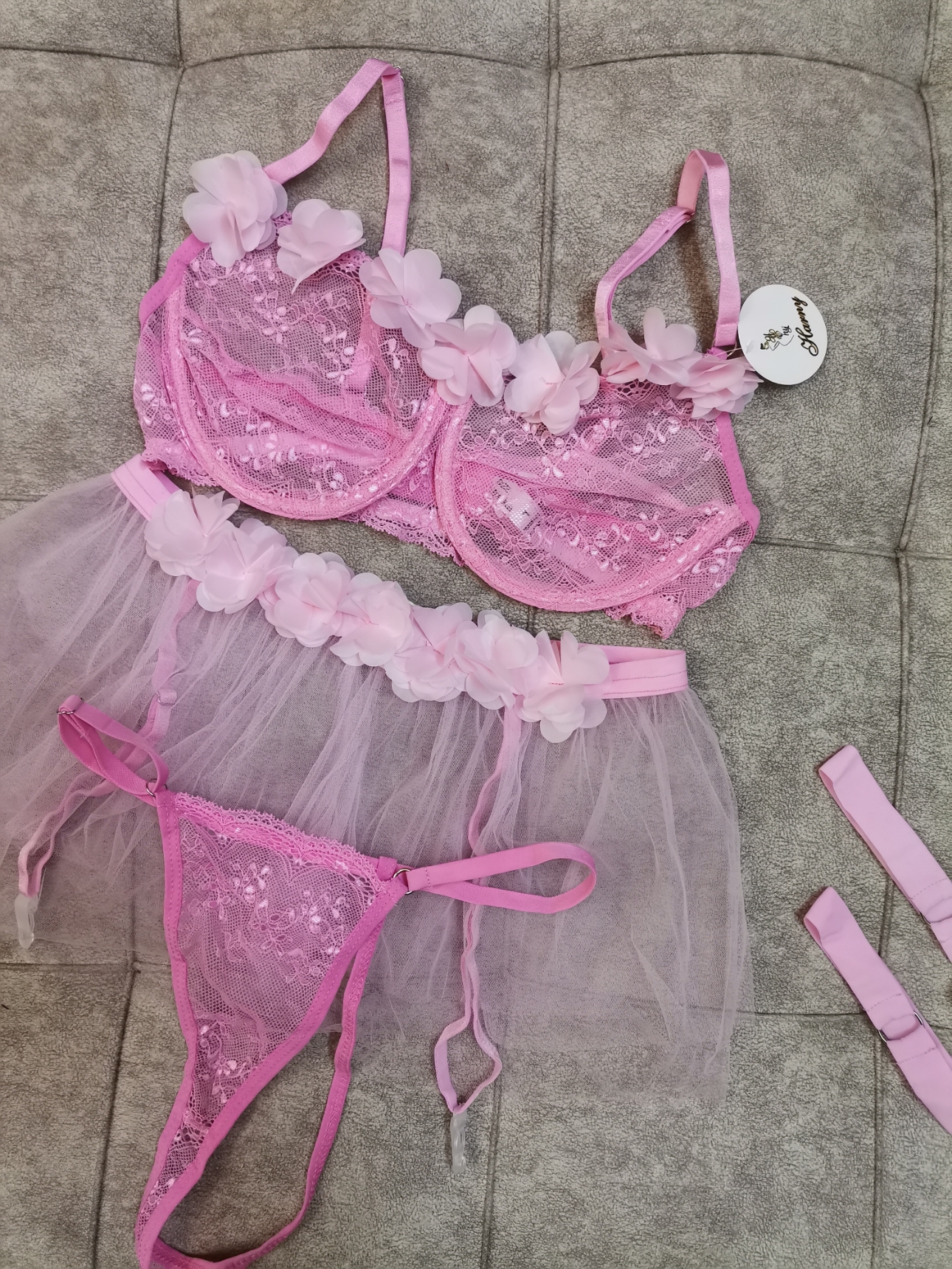 ست فانتزی مدل شکوفه گارتر دار - 5تکه