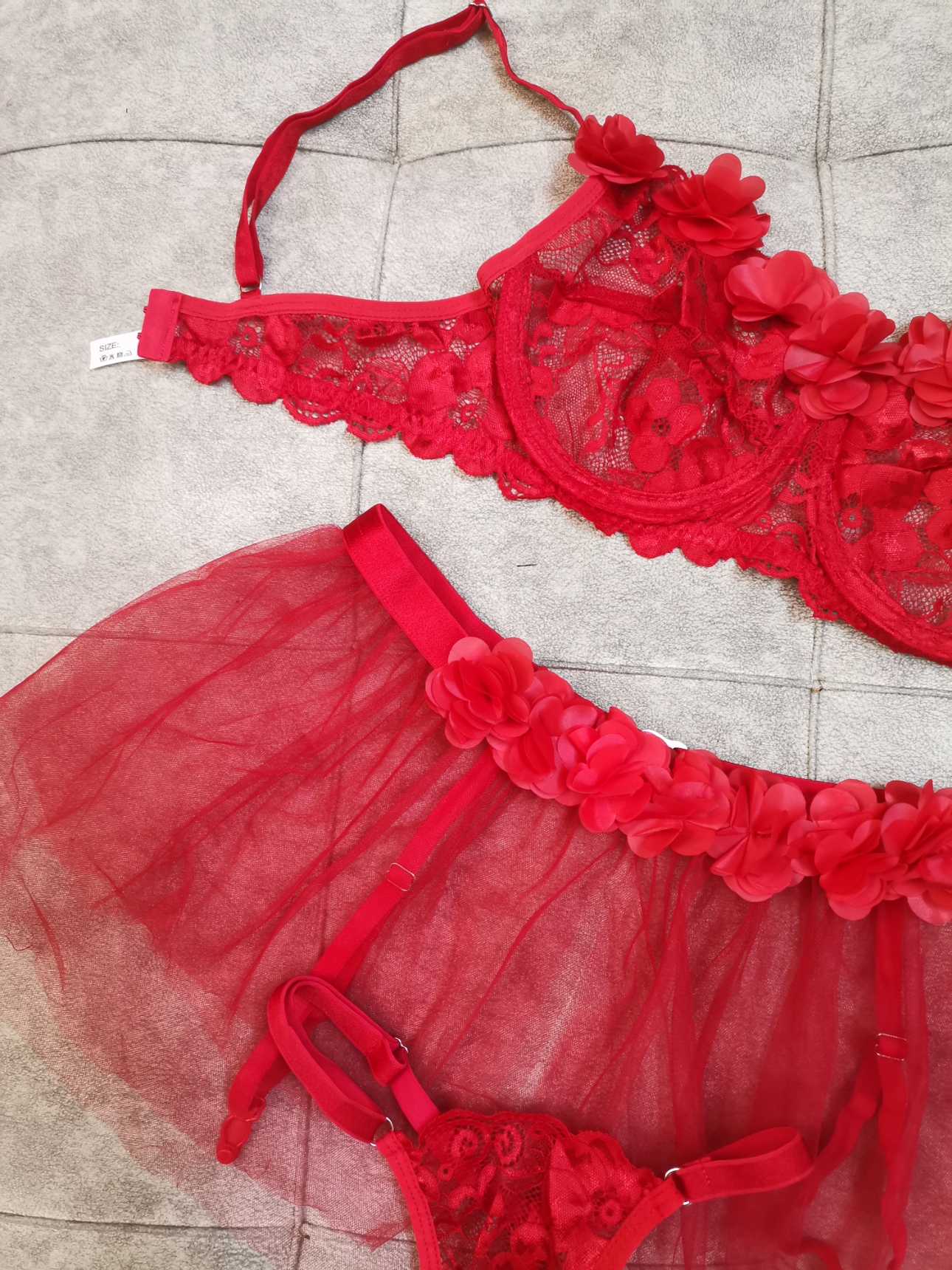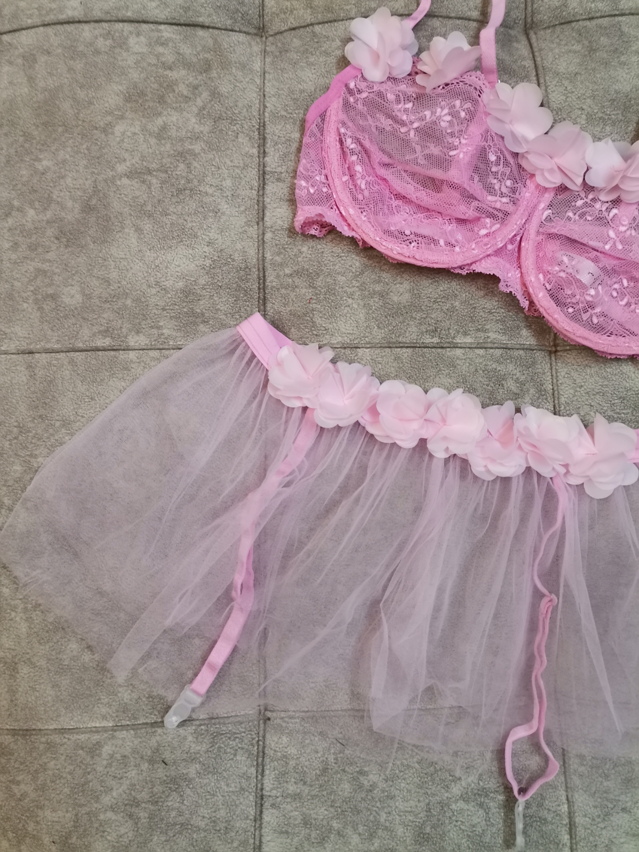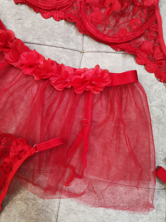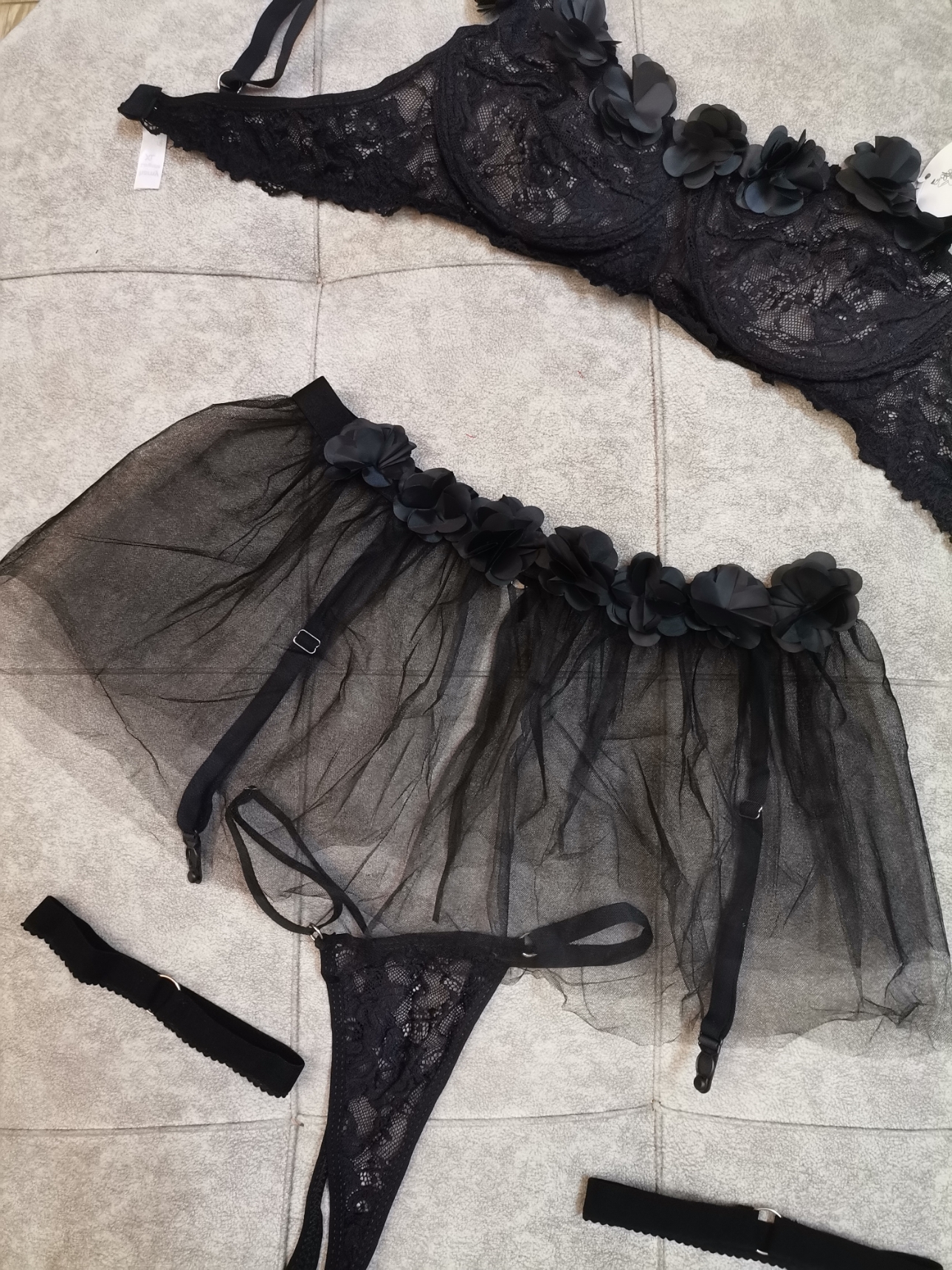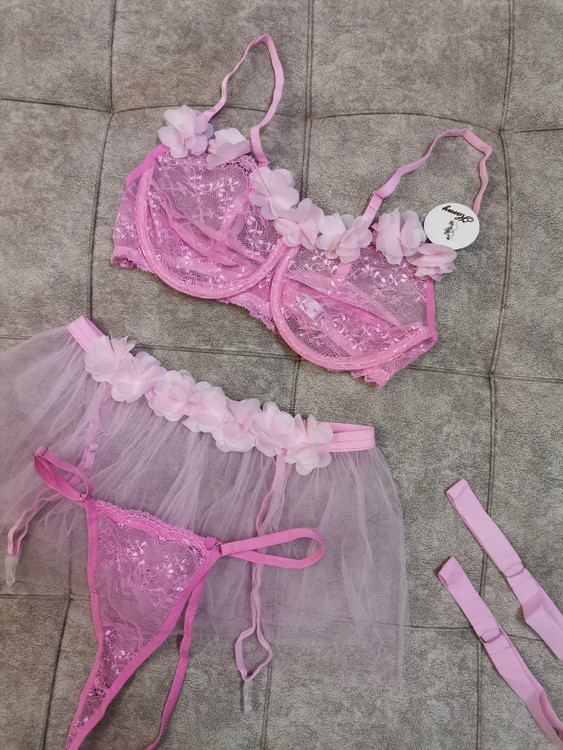 ست فانتزی مدل شکوفه گارتر دار - 5تکه